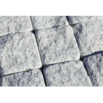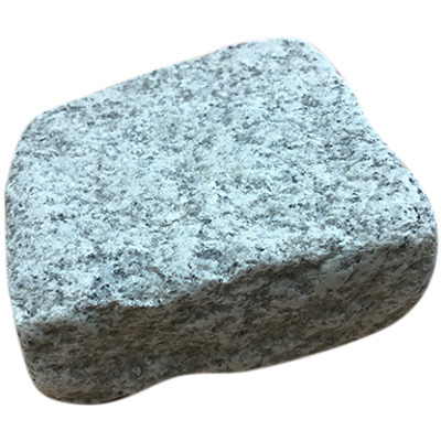 Гранитная брусчатка галтованная светло серая Мансуровское месторождения от производителя обработана в специальных барабанах которые придают краям сглаженные углы и стороны.